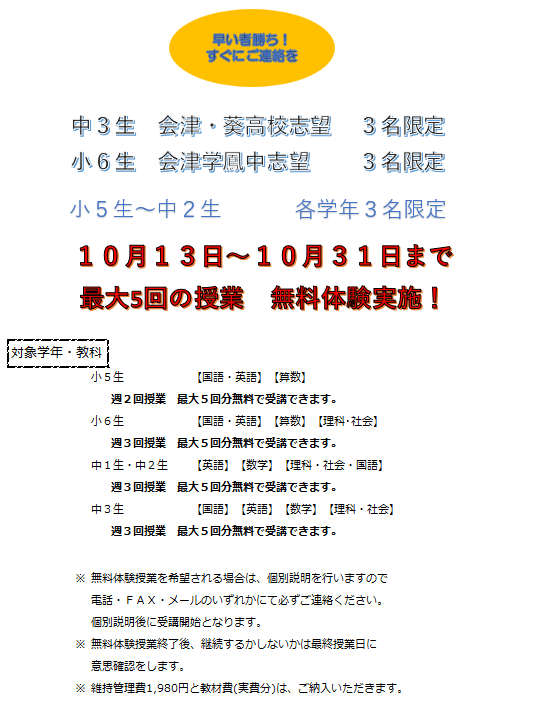 小5~中3生 無料体験実施